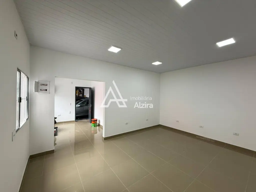Salas novas pintadas com um piso em porcelanato, boa iluminação.