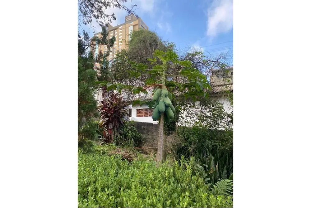 O terreno tem um declive de aproximadamente 3 metros em relação ao nível da rua.