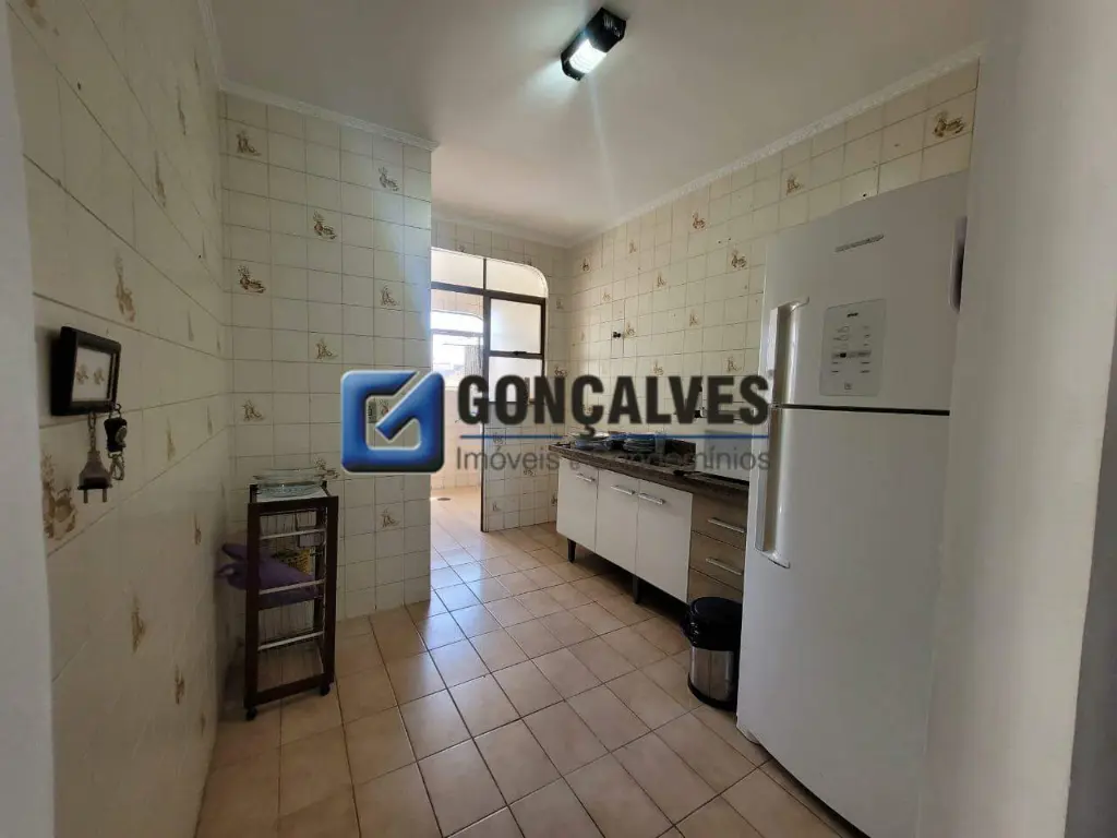 Apartamento residencial para aluguel em Santa Terezinha, São Bernardo do Campo. Área interna de 65 m², 2 quartos sendo 1 com armário e cama de casal, cozinha com armários, geladeira 1 sala com sofá, 1 banheiro, acabamento cerâmico e posição de frente. Conta com área de serviço, armário na cozinha, box no banheiro, cerca elétrica, circuito de TV, interfone e portão eletrônico.