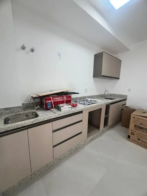 - Cozinha em conceito aberto, planejada e equipada com cooktop