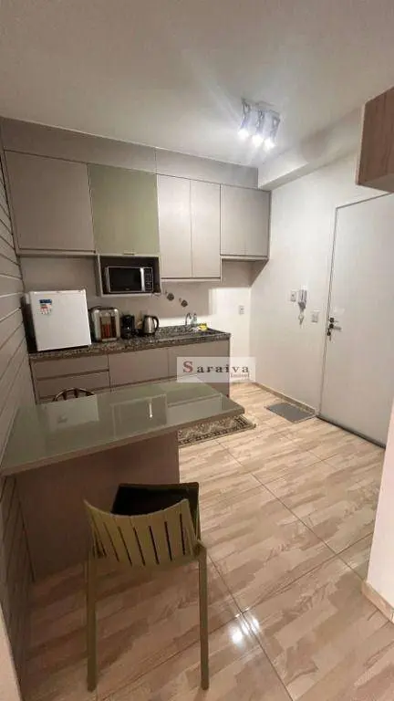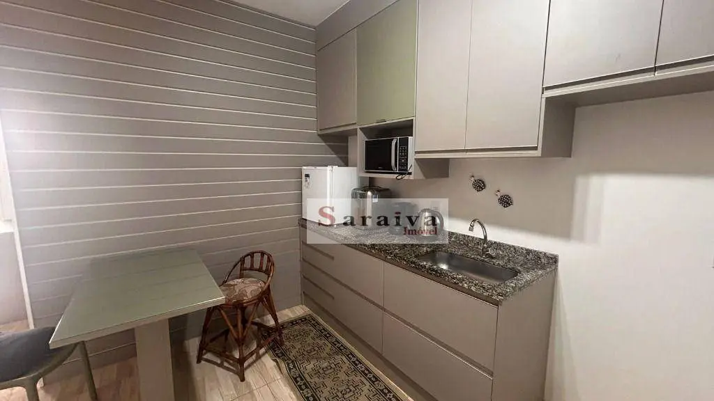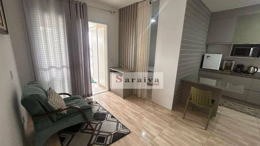 Studio semi mobiliado com ambientes integrados e ótima distribuição dos espaços. Todo em piso porcelanato, fino acabamento, sala integrada, cozinha com armários planejados, frigobar, mini fogão elétrico, micro-ondas, cafeteira, filtro de água elétrico, bule elétrico, dormitório com cama box de solteiro, guarda-roupa planejado bem amplo, varanda envidraçada e com tela de proteção. O Studio possui 1 vaga de garagem sorteada a cada 2 anos, essa é no subsolo.