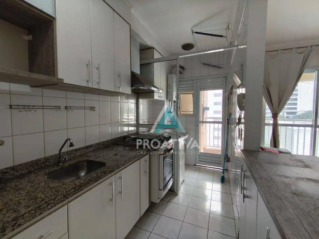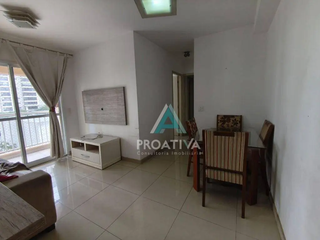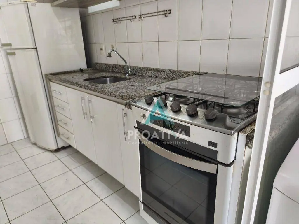 56m² de área útil, distribuídos em: 01 suíte com armários planejados e cama box de casal; 01 dormitório de solteiro com armários planejados, mesa de escritório e cama box; living 02 ambientes com mesa, 04 cadeiras, rack de chão e TV; varanda gourmet com churrasqueira à carvão e uma maravilhosa vista para a área de lazer, principalmente para o conjunto aquático; cozinha americana com armários planejados, geladeira, fogão, coifa e microondas; área de serviço com armários planejados, tanque de louça, aquecedor à gás, máquina de lavar Electrolux e varal de teto; 01 vaga de garagem.