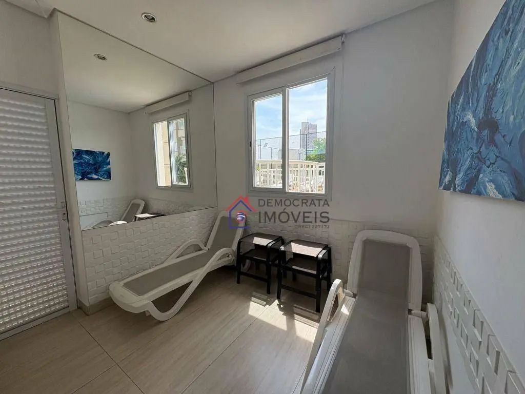 Condomínio com portaria 24 horas, elevador, academia, piscina, quadra esportiva, salão de festas, churrasqueira, playground e sauna.
