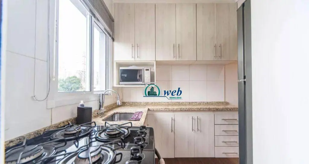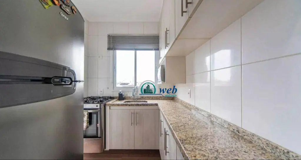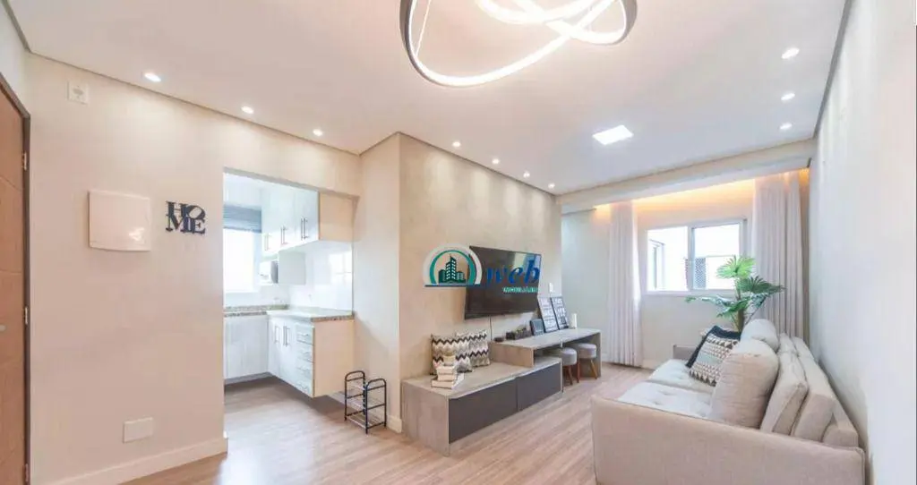 60 mts², com 2 dormitórios planejados, sendo 1 suíte com cama de casal e Tv, sala ampla 2 ambientes com sofá e rack, cozinha planejada com geladeira, microondas e fogão, area de serviços com maquina de lavar e armários. 1 vaga de garagem