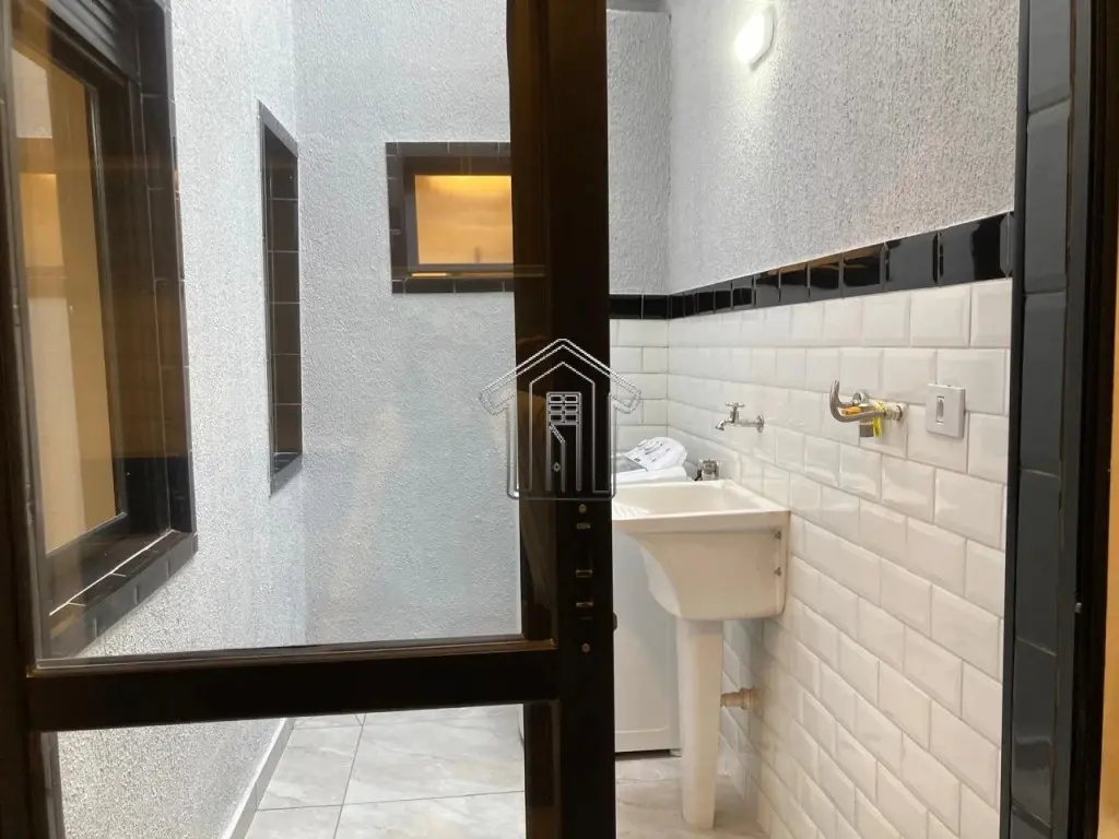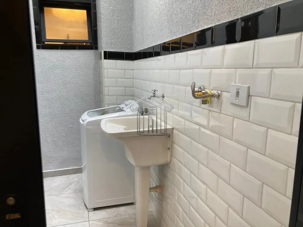 Área de serviço separada, com teto retrátil e lavadora de roupa