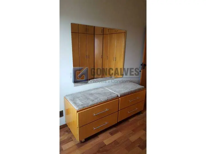 Apartamento, Vila Bastosem Santo André Mobiliado, pintura nova e taco de madeira revitalizado, todas as janelas com tela de proteção, 3 dormitórios com cortina sendo 1 suite, sala de estar com sofá, tapete e móvel para TV, banheiro, sala de jantar com mesa de 6 cadeiras, cozinha com geladeira, fogão, coifa e micro-ondas, lavanderia com banheiro de empregado, varal de teto, lava roupa e secadora, 2 vagas de garagem. 100m²,Condomínio possui, churrasqueira, salão de festa com copa, academia, sauna, jardins e 2 elevadores.