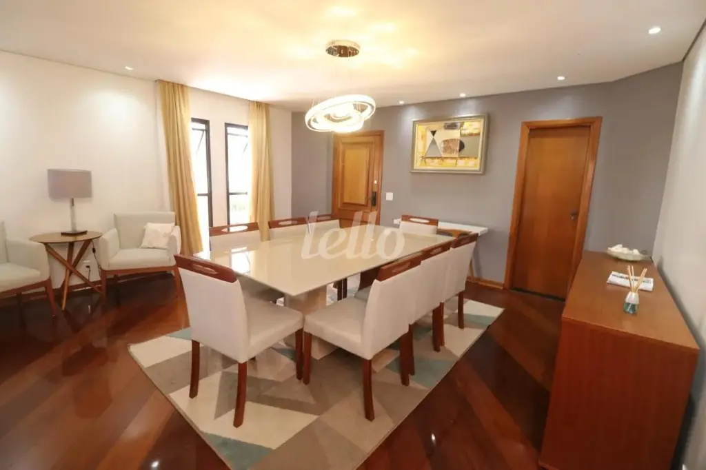 Apartamento para alugar em Jardim. Apartamento amplo com 160 m², 2 vagas de garagem e elevador privativo com acesso direto à sala, garantindo total privacidade em um prédio com apenas dois apartamentos por andar. O imóvel conta com 1 suíte com varanda, 2 dormitórios, escritório, banheiro social e lavabo. A área social é composta por sala para dois ambientes com varanda, hall de entrada, cozinha espaçosa e área de serviço grande com entrada independente. O apartamento será locado com sofá, painel e rack de TV, buffet aparador, mesa de jantar com 8 cadeiras e tapete na sala. Na cozinha, permanecerão o fogão e mesa com 6 cadeiras. Um dos dormitórios conta com cama de casal King e o hall do elevador possui um aparador. Localização privilegiada na Rua Almirante Protógenes, no Bairro Jardim em Santo André. O endereço mais nobre da cidade, a poucos metros da Rua das Figueiras. Região cercada pelos melhores restaurantes, padarias e comércios de alto padrão, além de fácil acesso ao Parque Celso Daniel e ao Shopping Gra