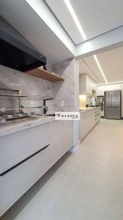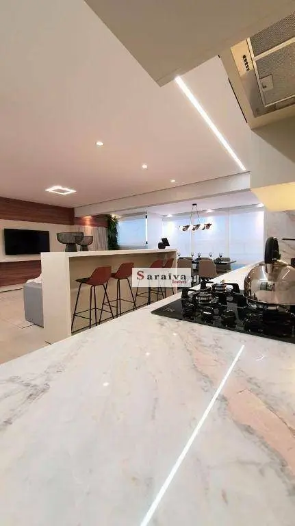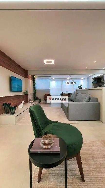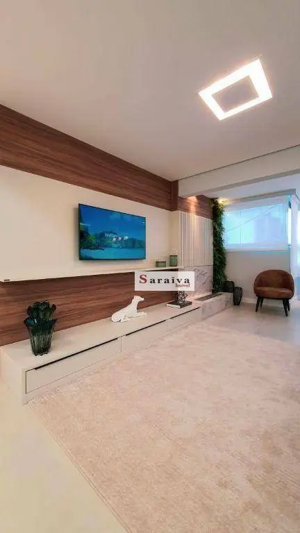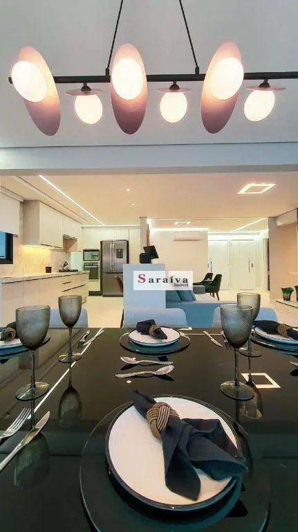 Apartamento composto por 3 suítes, 3 vagas e ampla varanda gourmet integrada com sala e cozinha.