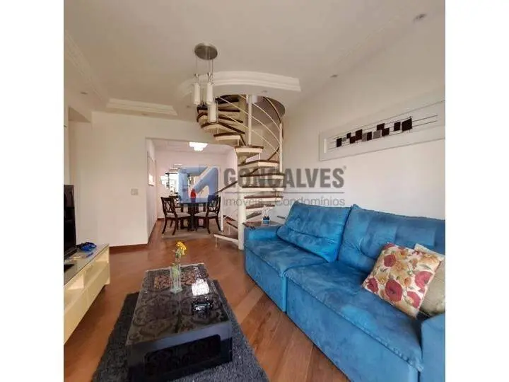 Apartamento Cobertura no bairro Vila Caminho do Mar, São Bernardo do Campo. Com 3 dormitórios, 1 suíte, 2 dormitorios com varanda, sala 2 ambientes com piso de madeira, cozinha planejada, bem arejada, piso frio, 2 banheiros com box e gabinete, area de serviço, no piso superior possui area de lazer com espaço gourmet, sala de jogos, lareira ecologica, piscina privativa, 3 vagas fixas. Otima localização, proximo a comercios, escolas, transportes
