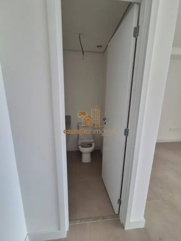 Sala integrada com lavabo e sacada gourmet e com fechamento em vidros