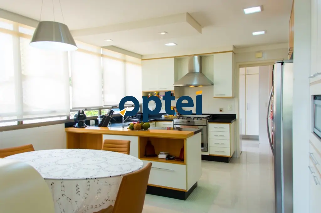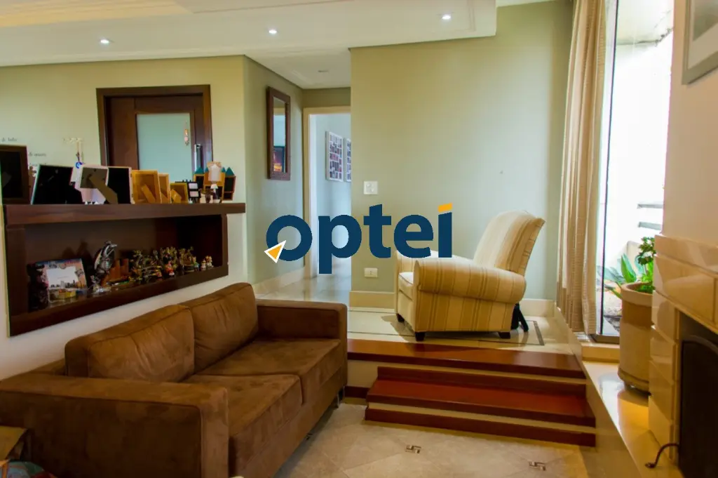 A área social é composta por sala com quatro ambientes, incluindo sala de estar, sala de jantar, sala de lareira e espaço de convivência, além de jardim de inverno que proporciona excelente iluminação natural. O apartamento também possui sacada e ambientes amplos, ideais para receber convidados com conforto.