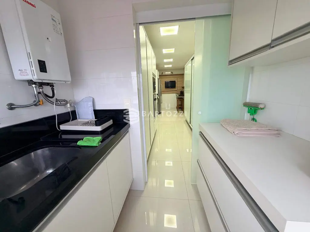Cozinha com eletrodomesticos e lavanderia ampla, bem ventilada, entrada de serviço.
