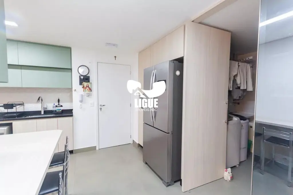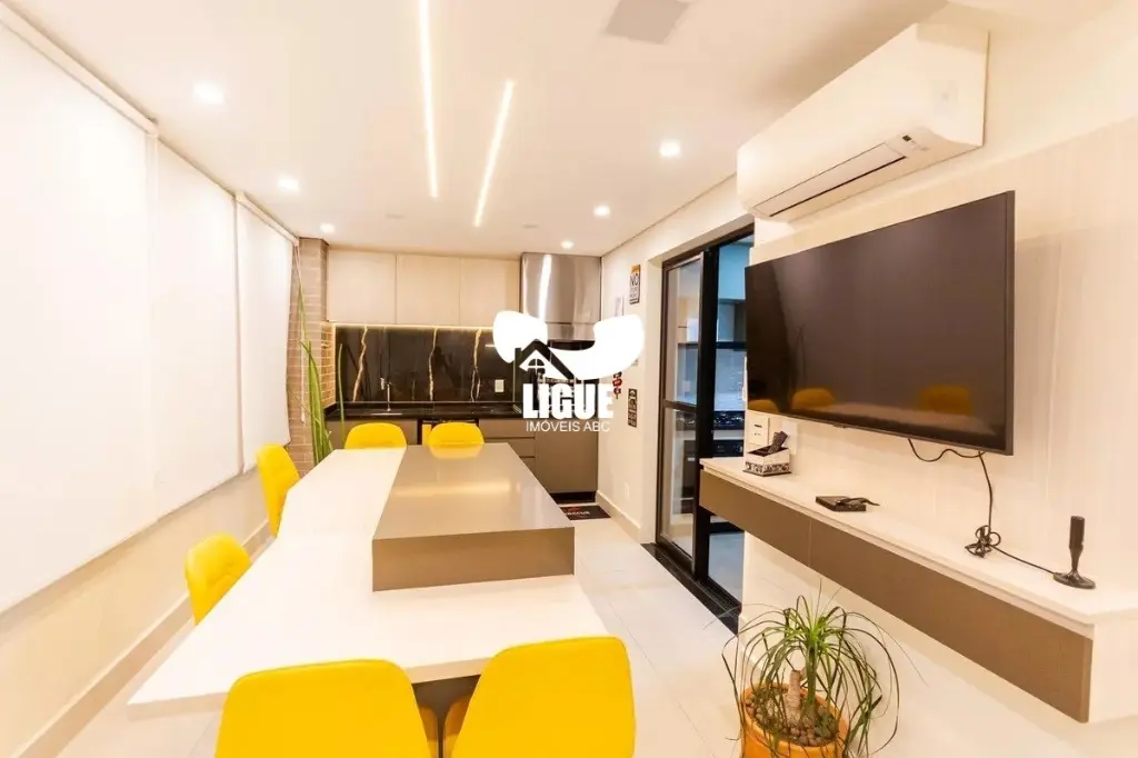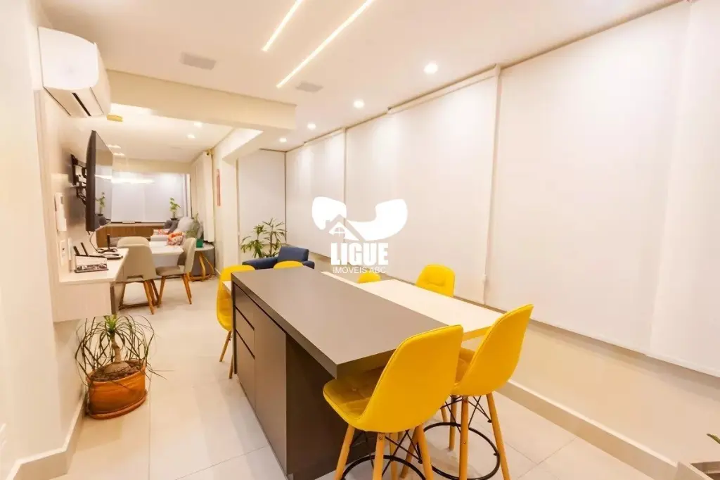 O imóvel conta com 3 suítes, todas com móveis planejados, 2 sacadas, sala ampla para 3 ambientes com varanda integrada ao terraço gourmet envidraçado, equipado com churrasqueira a carvão, além de lavabo. A cozinha moderna dispõe de cooktop, forno, coifa e armários novos. O apartamento possui ar-condicionado em todos os ambientes, área de serviço com área técnica, elevador privativo e gerador de energia atendendo dois pontos do imóvel. São 3 vagas de garagem, sendo uma com carregador para veículo elétrico, além de depósito privativo. O condomínio oferece infraestrutura completa, com academia, espaço pet, piscinas adulto e infantil climatizadas, espaço Uber, portaria blindada com sistema de clausura e segurança 24 horas, playground e quadra poliesportiva. Localização privilegiada, próximo à Rua Figueiras, Avenida Dom Pedro II, Avenida dos Estados, Centro Clínico Santo André 2 (Hapvida NotreDame Intermédica), Smart Fit, Estação Prefeito Saladino, SESI Santo André, Grand Plaza Shopping, Pão de Açúcar, além de restaurantes, serviços, comércio local e fácil acesso ao transporte público. Agende já uma visita e conheça este imóvel exclusivo.