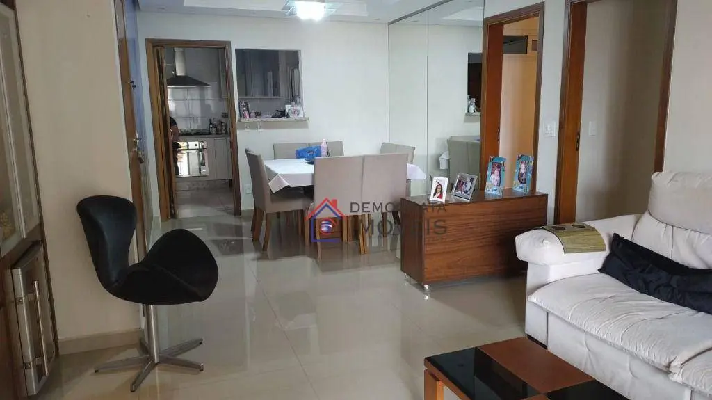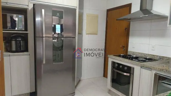 Apartamento com 120m² de área útil. Possui 3 suítes, lavabo, sala ampla de 2 ambientes com varanda gourmet, cozinha espaçosa e bem equipada com armários e eletrodomésticos embutidos, área de serviço e 4 vagas de garagem.