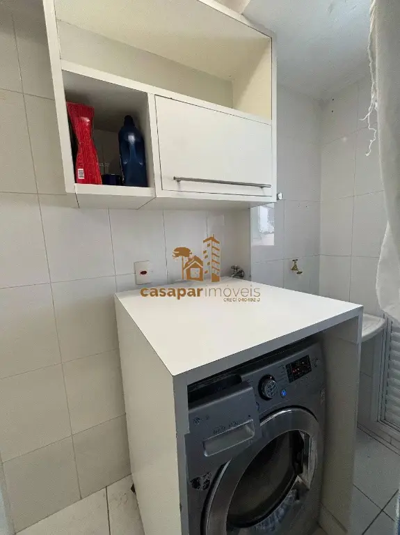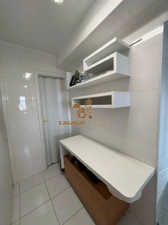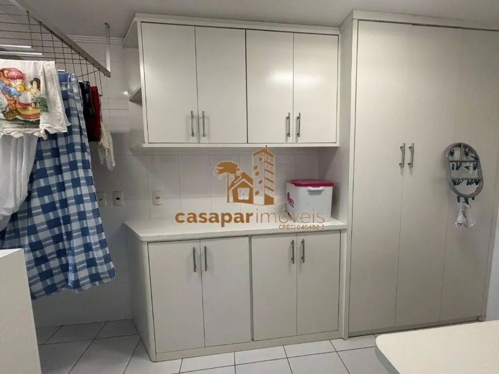 Cozinha com planejados, área de serviço com banheiro e ventilação natural