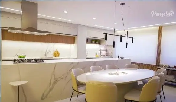 Com 153 m² de área útil, cada unidade oferece 3 suítes (incluindo suíte master com terraço), 3 vagas determinadas, um living integrado à varanda gourmet com churrasqueira a carvão e exaustor, garantindo conforto e elegância para o dia a dia e para receber com sofisticação.