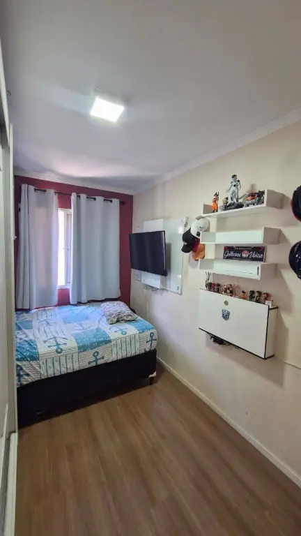 Lindo apartamento moderno à venda - Condomínio fechado | 55m² | R$ 240.000 Descubra seu novo lar! Apartamento de 55m² muito bem distribuídos, com acabamento moderno e caprichado em um condomínio tranquilo, silencioso e extremamente seguro. Destaques do imóvel: - Sanca com 18 spots de luz e 2 lustres proporcionando iluminação elegante e aconchegante, cortina embutida. - Piso laminado em toda sala e quartos com rodapé branco. - Banheiro reformado, com piso novo, azulejos de ladrilhos azuis, móvel planejado com Cuba e box de vidro. - Cozinha completa - todos os móveis da cozinha permanecem. - Bloco de vidro com apoio de mármore dividindo cozinha da lavanderia. - Armário infantil e guarda-roupa do quarto de casal ficaram no imóvel - Painel de TV do quarto de casal permanece no imóvel. - Porta de entrada maior que a padrão. - 2 paredes da sala trabalhadas. - 1 vaga em frente ao bloco.