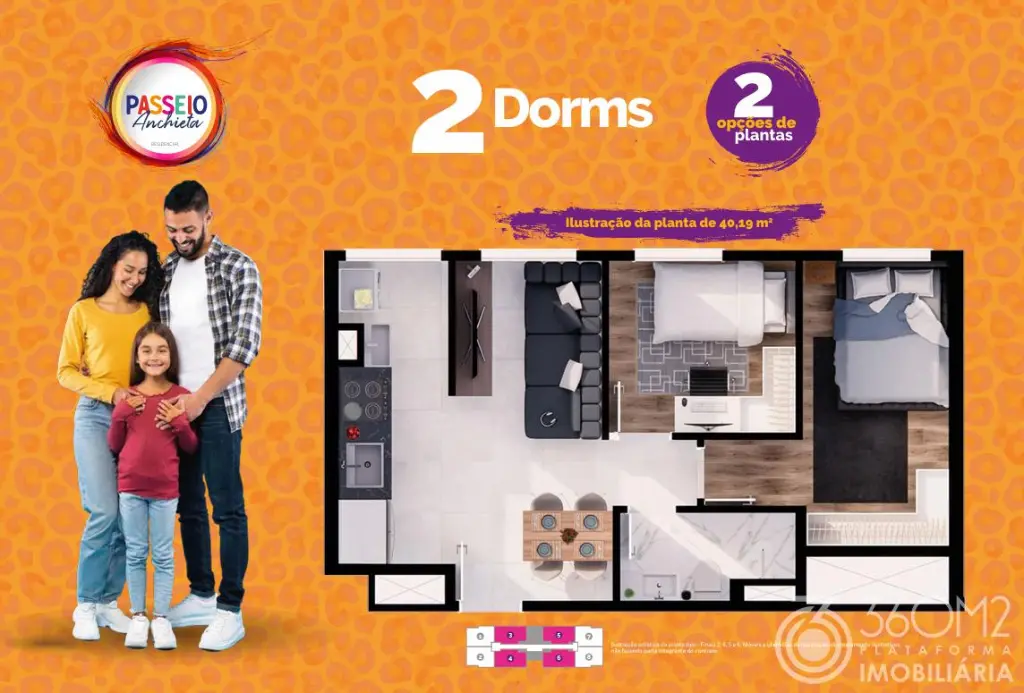 Área Privativa de 40,19 m².