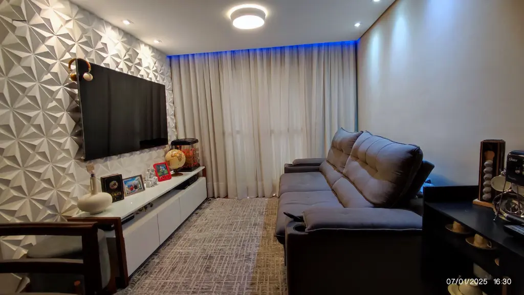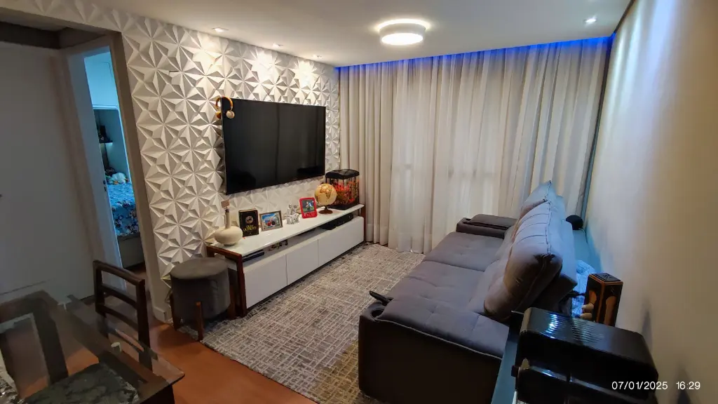 Com 2 dormitórios, possui 1 banheiro, 1 vaga de garagem, sacada fechada com vidro, encontra-se mobiliado.
