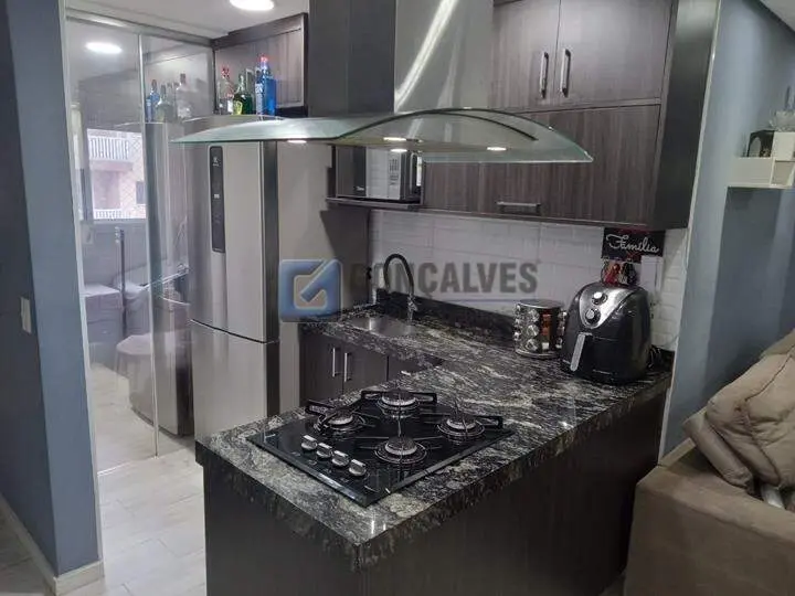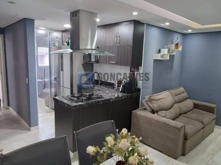 Ótimo apartamento residencial à venda em Santo André, localizado na Vila João Ramalho. Possui 49 m² de área interna com acabamento em porcelanato, 2 quartos, 1 banheiro e 1 vaga de garagem. Conta com 2 elevadores, unidade em andar alto (17º) e playground no condomínio. Ideal para quem busca conveniência e espaço compacto com armário na cozinha.