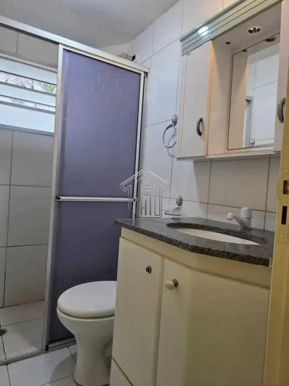 Banheiro com gabinete e box