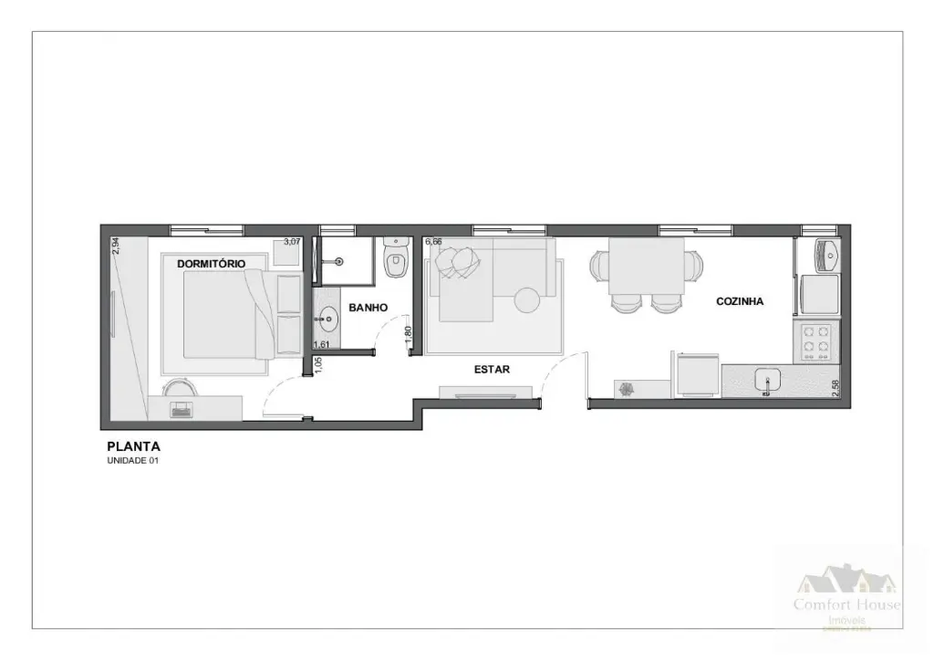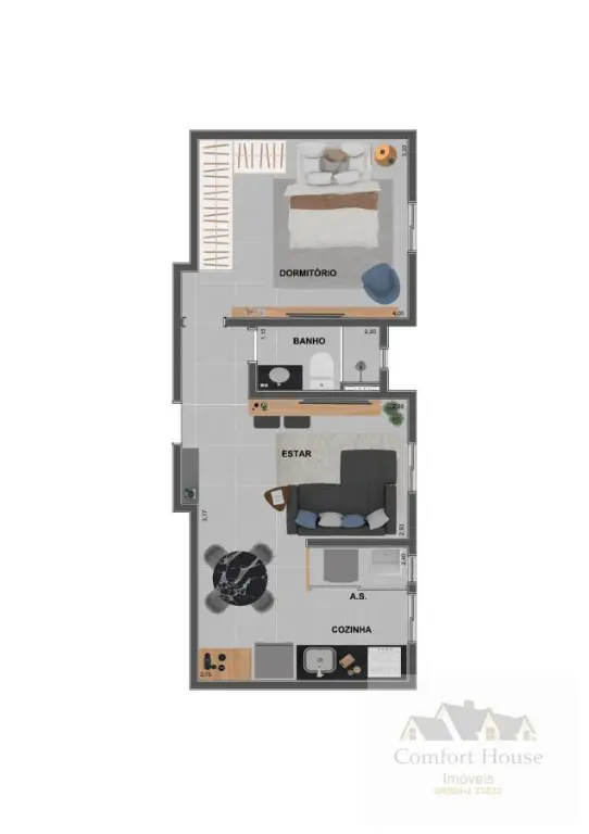 Este imóvel conta com 1 dormitório e 1 banheiro, sendo ideal para quem busca um espaço compacto e funcional.