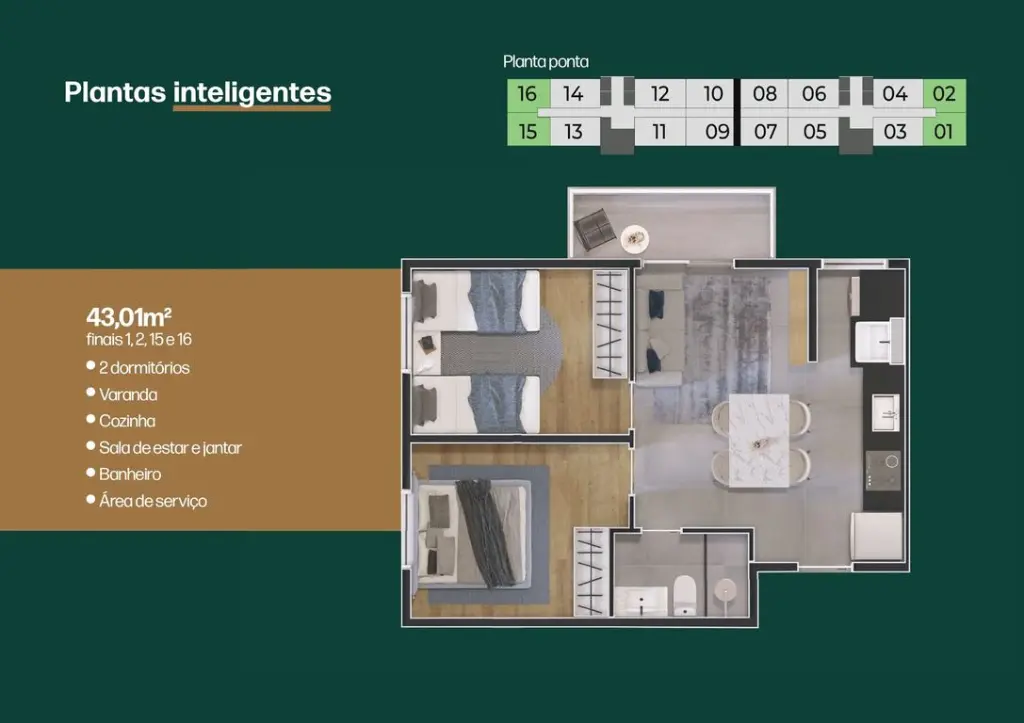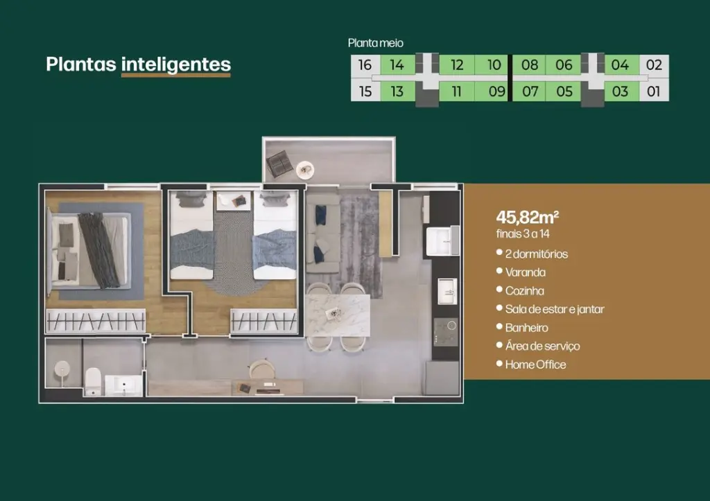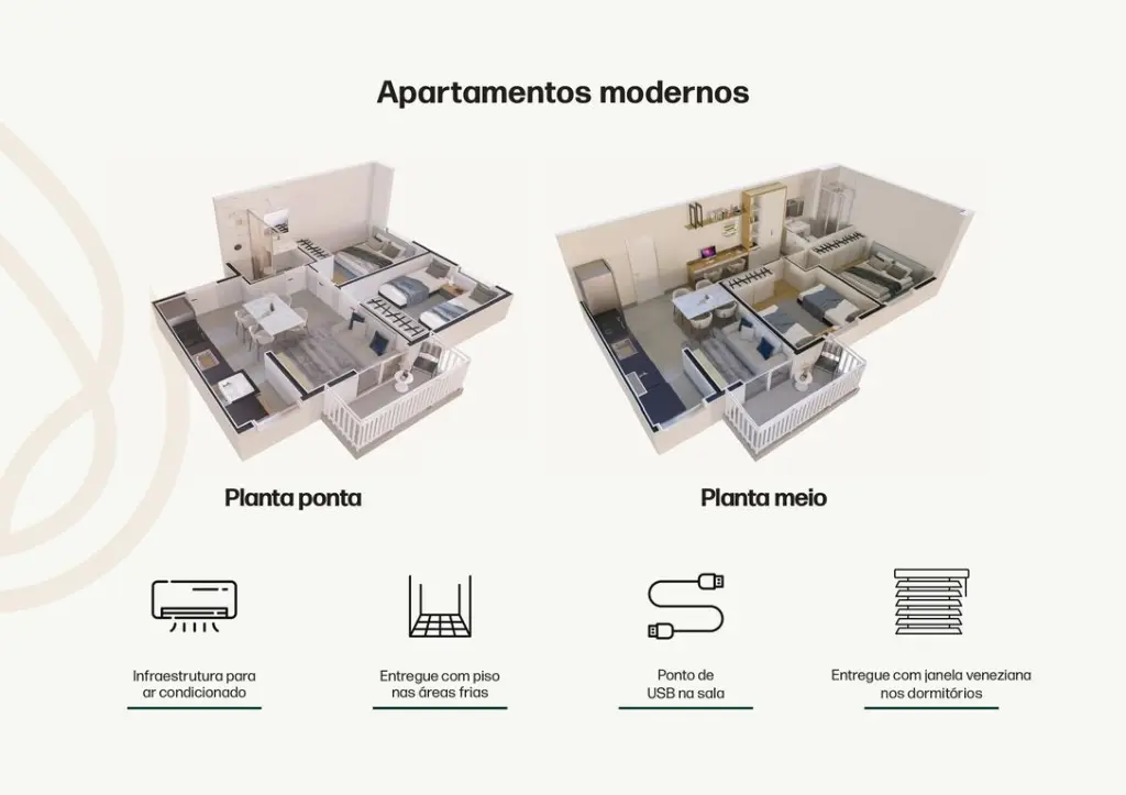 ?? Com plantas de 40m² a 46m²? Sendo 2 dormitórios com varanda.
