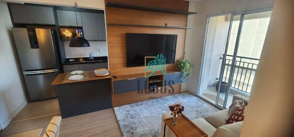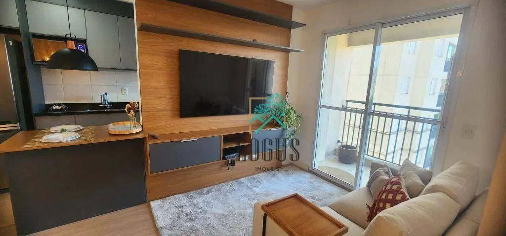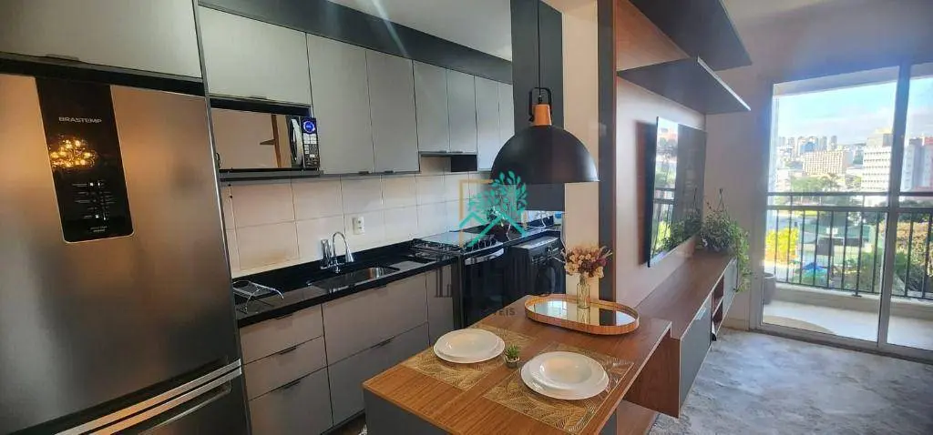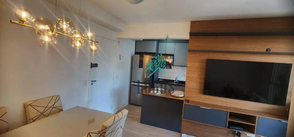 Com 1 quarto, ampla sala com dois ambientes com sacada, cozinha espaçosa com armários planejados, área de serviço separada, 1 vagas de garagem.