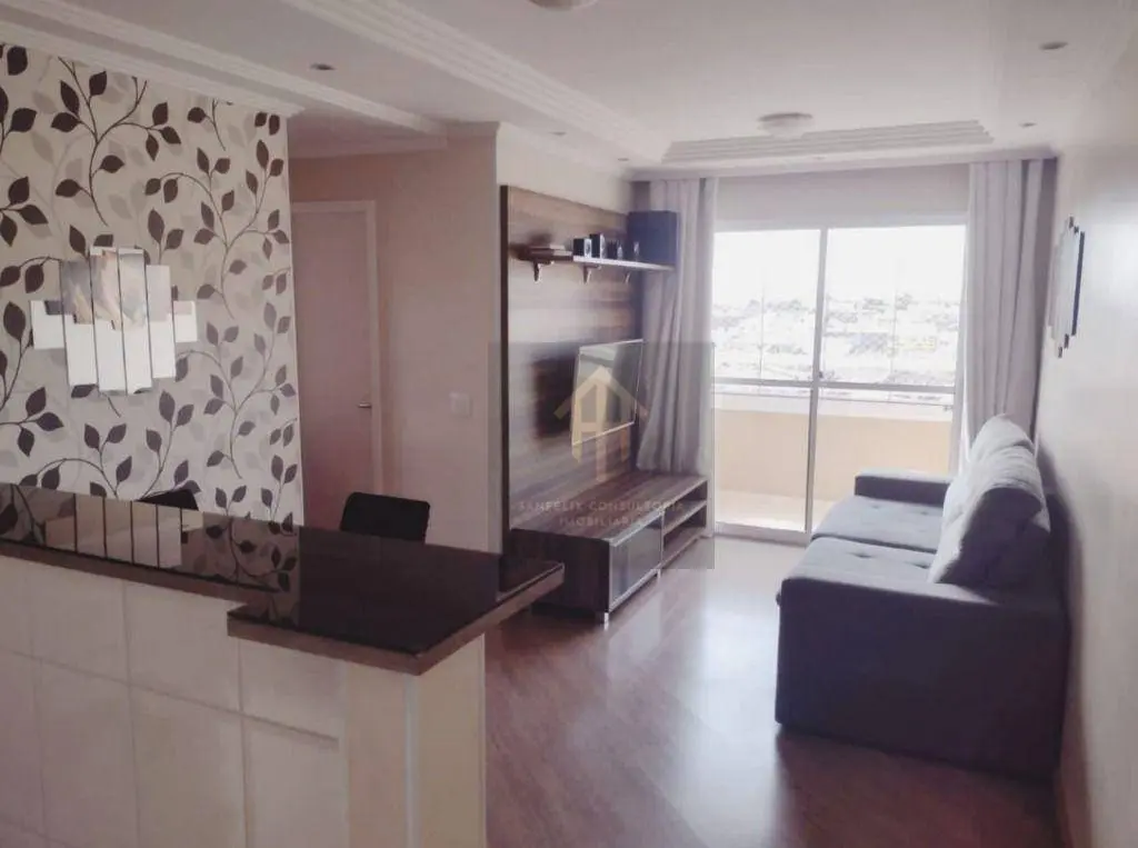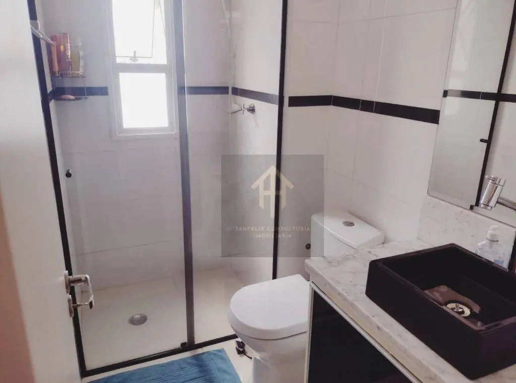 Condomínio oferece piscinas adulto e infantil, 2 salões de festa, academia, sala de jogos, sala de brinquedos, sauna, mini mercado e quadra poliesportiva.