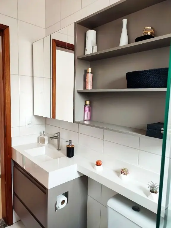 Apartamento mobiliado com 2 dormitórios sendo 1 suíte, sala para 2 ambientes, banheiro social, cozinha, área de serviço e 1 vaga, piso laminado no quarto e na suíte e porcelanato nas demais dependências, blindex na varanda e toldo retrátil na área de serviço, próximo a mercados e academias. Fácil acesso à