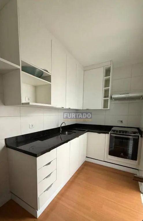 - Cozinha integrada, planejada e equipada com fogão e coifa