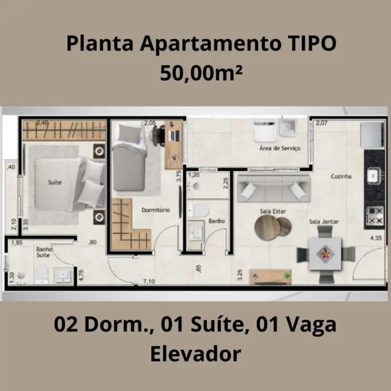 APARTAMENTO TIPO SEM CONDOMÍNIO COM 50,00m²