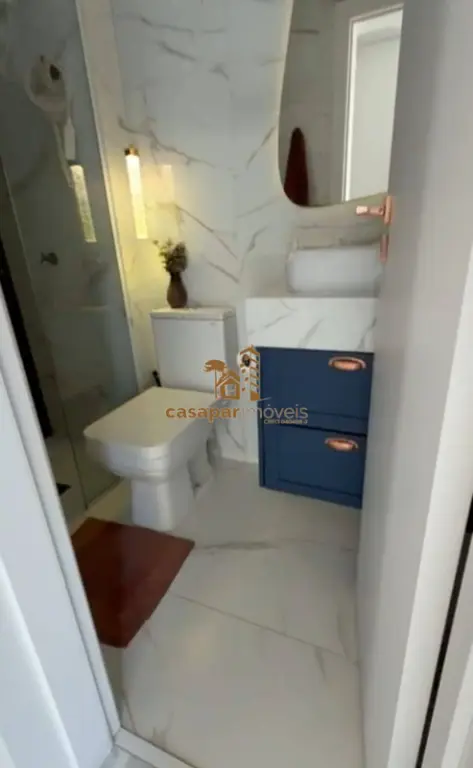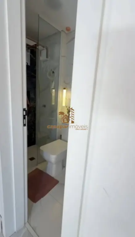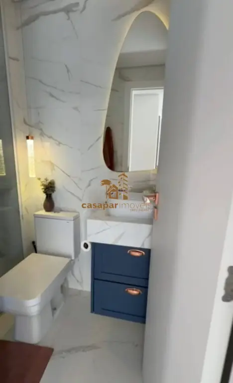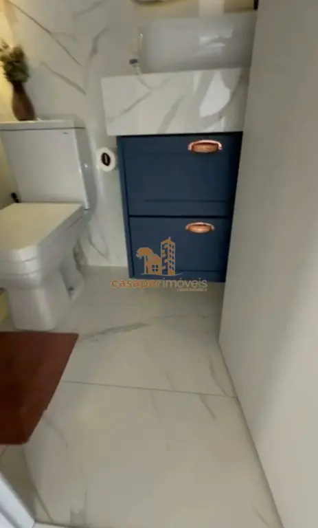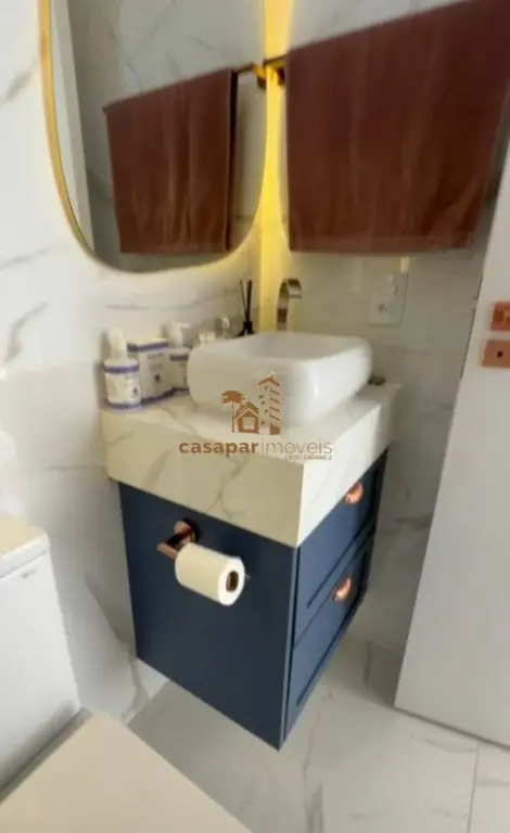 Banheiro social com box em vidro e planejados