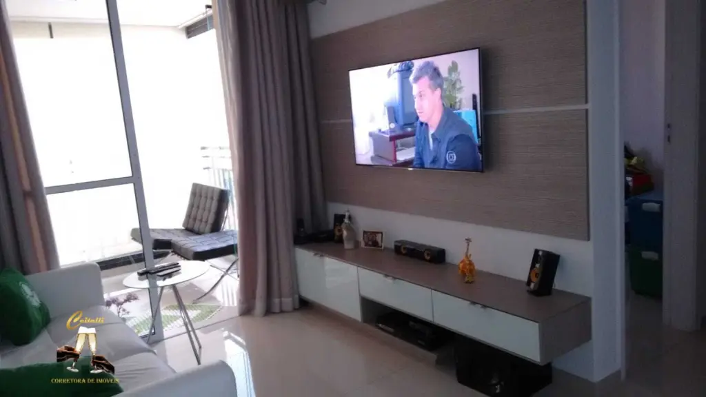 Apto com 58 m, 2 dormito´rios, sendo 1 com sui´te, arma´rios no quarto com sacada na sala. o´tima localizac¸a~o. condomi´nio com lazer completo .