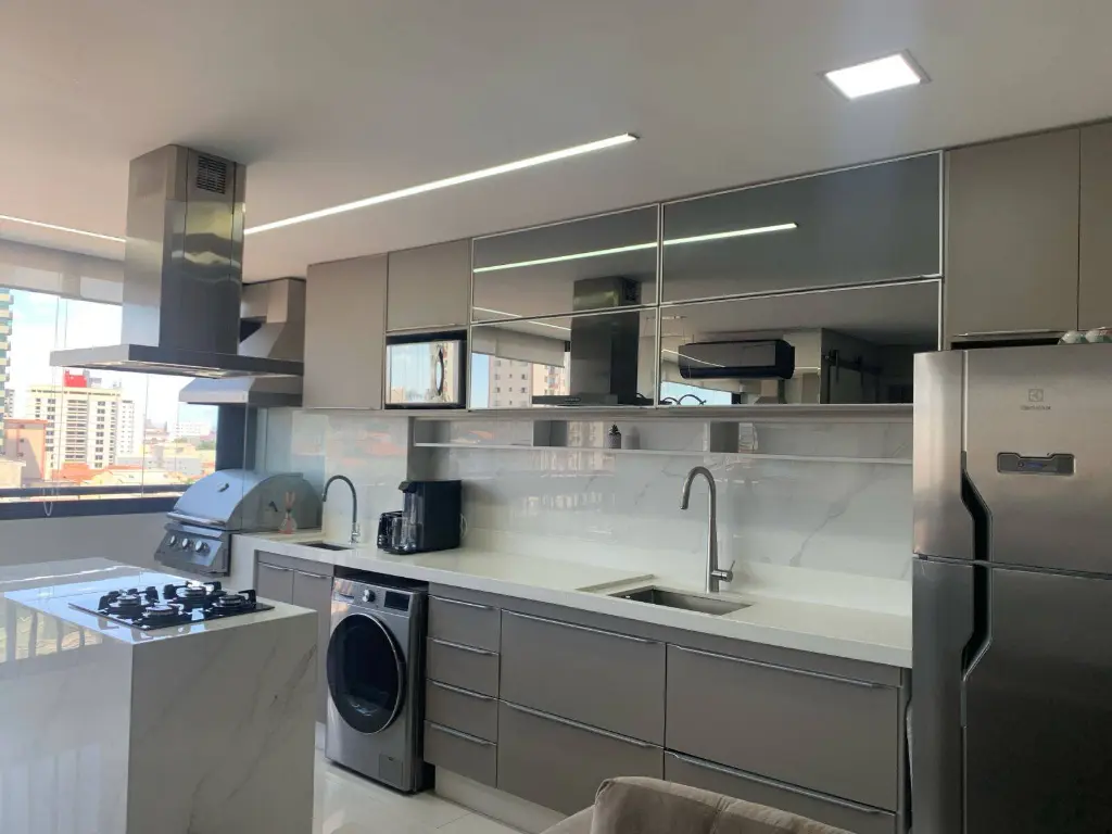 Lazer na Unidade: Churrasqueira (provavelmente na sacada/varanda).
