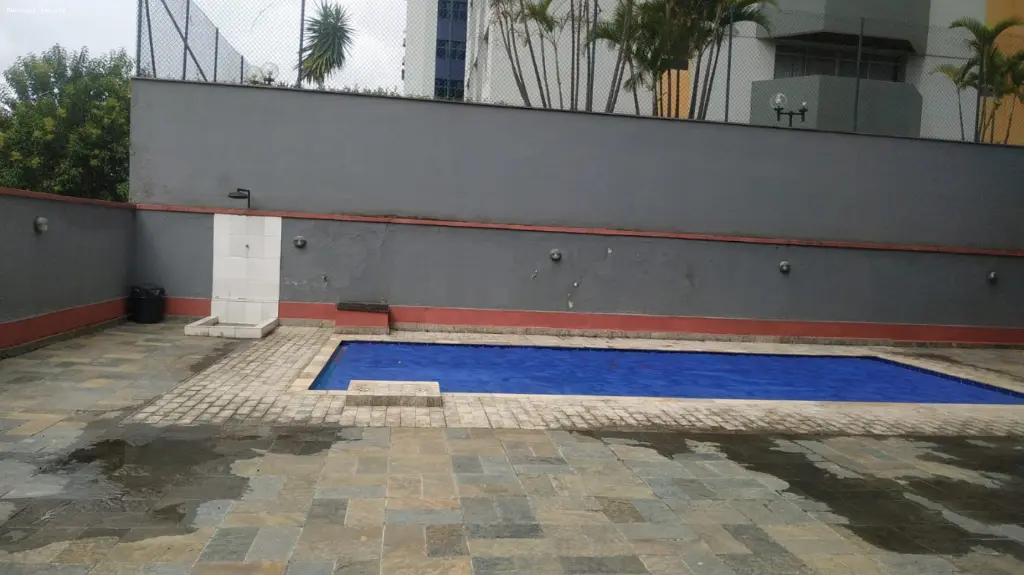 Prédio com piscina, salão de festas e jogos.