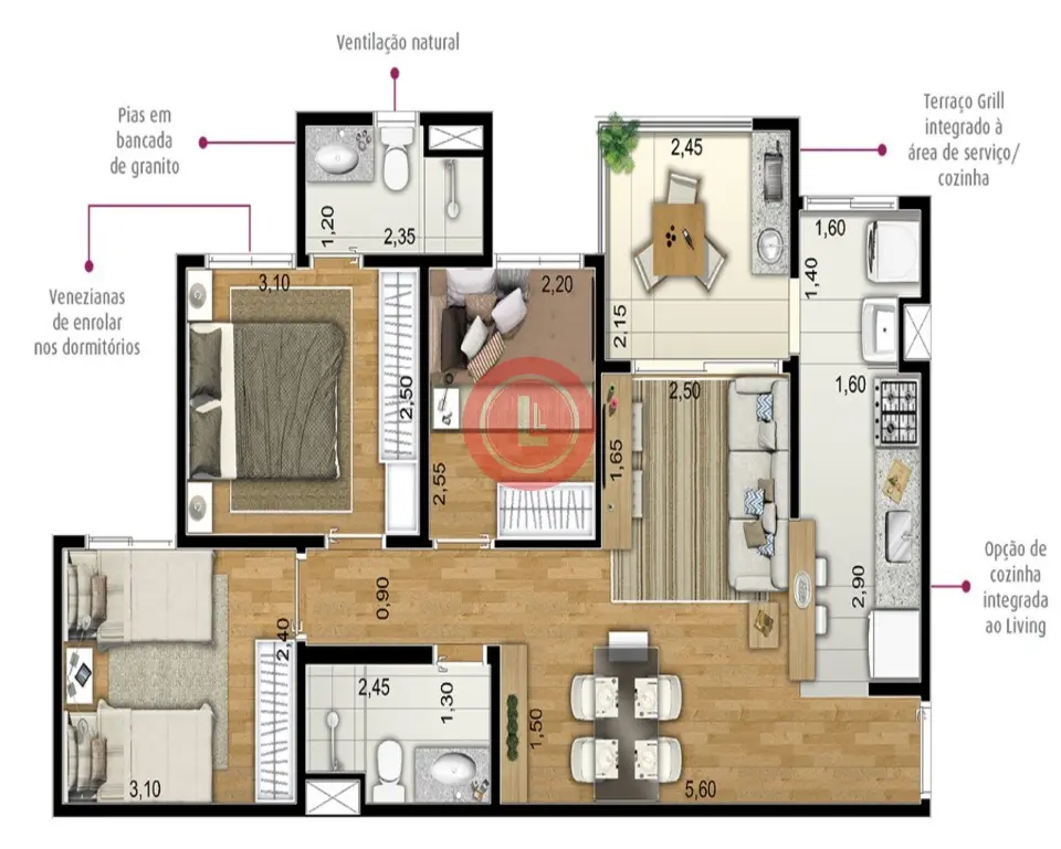 Apartamento, 3 Dorms à Venda, Santa Maria, 65 m² por R$ 582.000,00