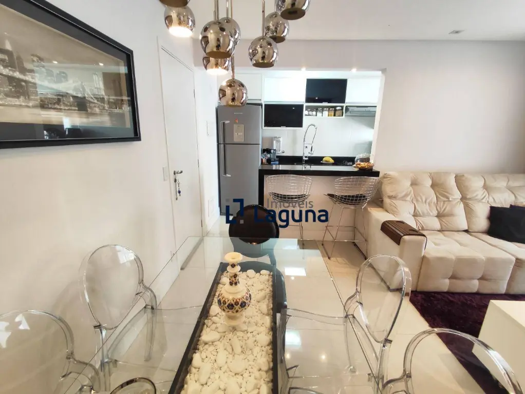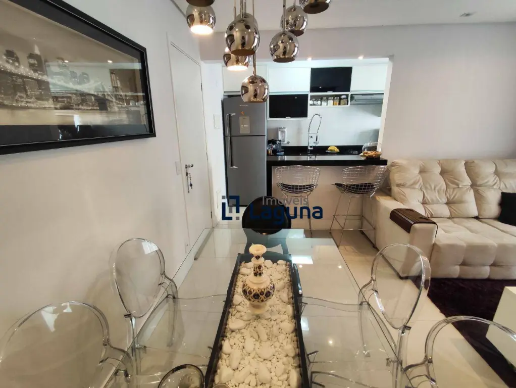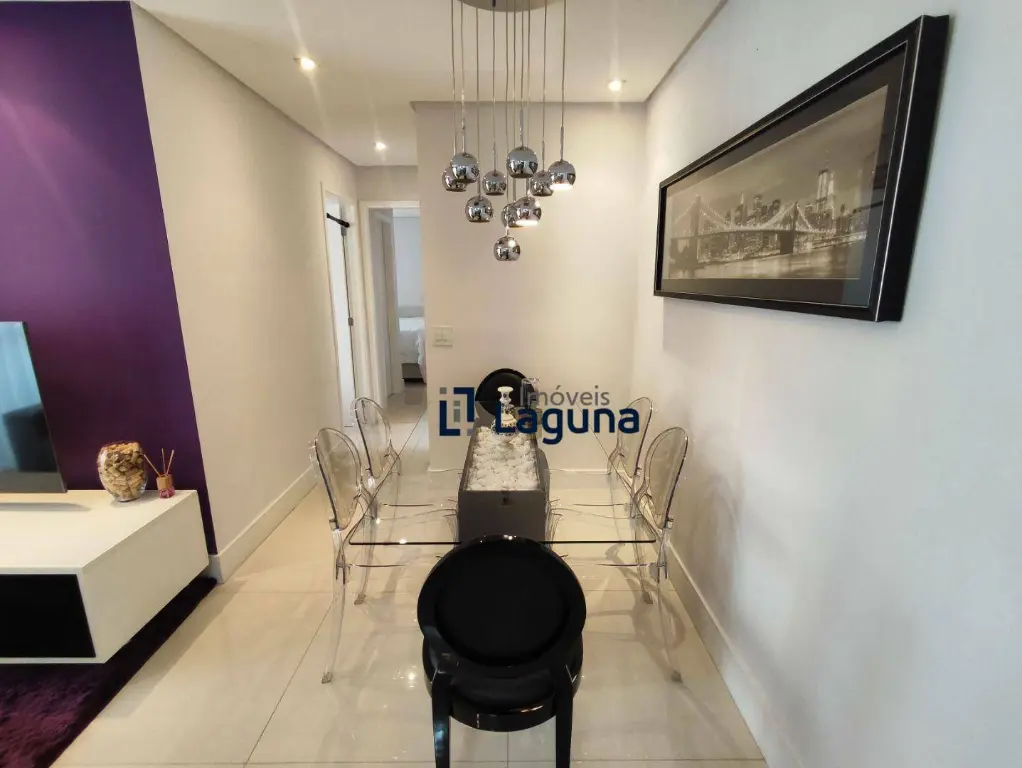 - Sala de jantar com elegante mesa de vidro para 6 pessoas.
