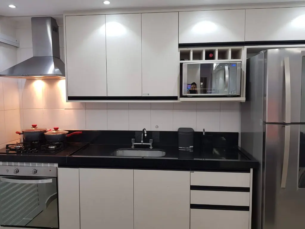 2 dormitórios, sendo 1 suíte, Sala para dois ambientes, Varanda gourmet envidraçada, Cozinha americana planejada, Área de serviço, Aquecimento a gás nas torneiras e duchas, 1 vaga de garagem demarcada, Venda com toda a mobília inclusa e Aceita pets.