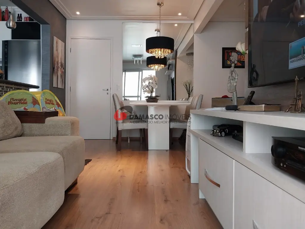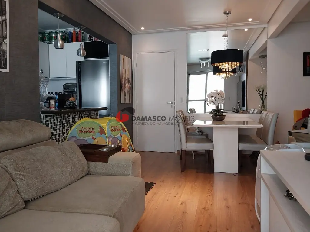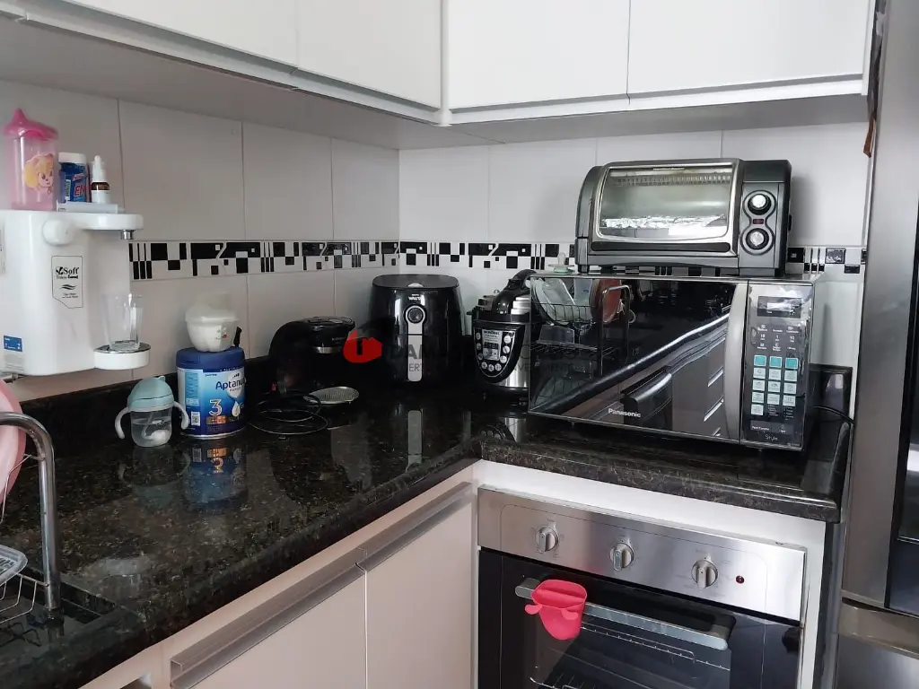 A sala, ampla e aconchegante, conta com sacada, teto rebaixado e iluminação de LED, criando um ambiente moderno e agradável. A cozinha americana, prática e elegante, vem equipada com cooktop e coifa, ideal para quem aprecia praticidade e estilo.