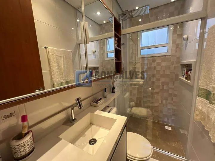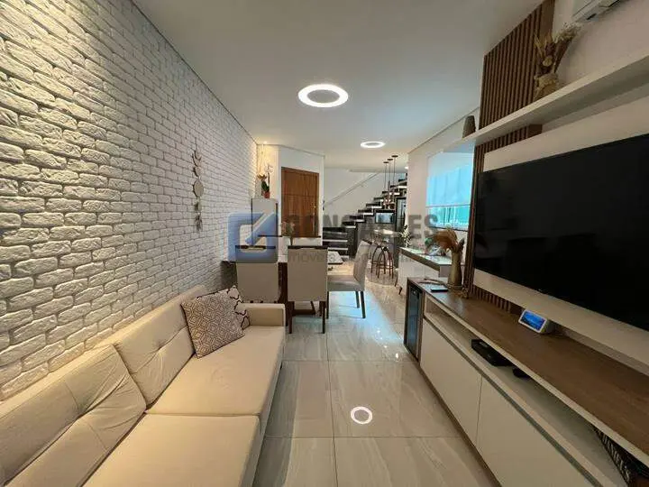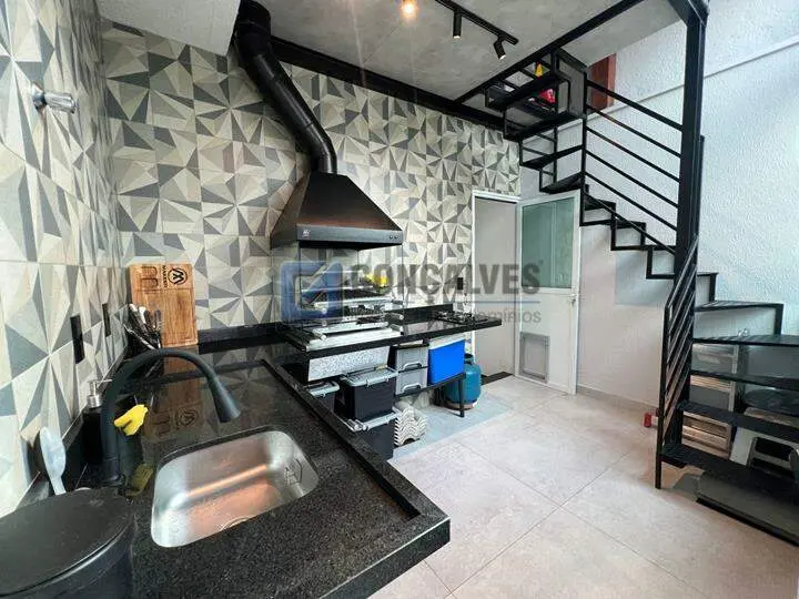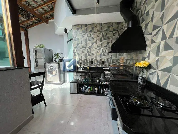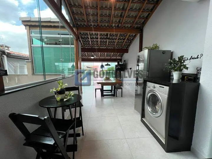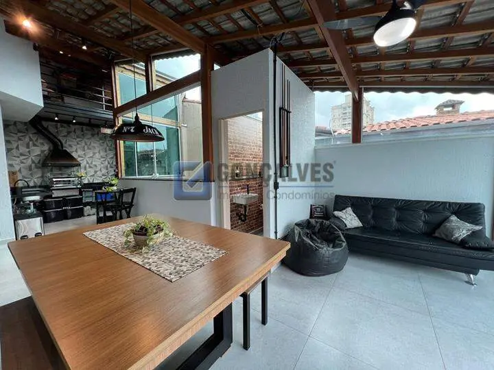 Venda: cobertura residencial com 114 m² de área interna, distribuídos em 2 andares, 2 quartos, sendo 1 suíte, 3 banheiros e 2 vagas de garagem. Conta com área de serviço, armário na cozinha, lavabo e churrasqueira para encontros. Localizada no Bairro Vila Alzira, em Santo André. Não perca: disponibilidade em unidades limitadas.