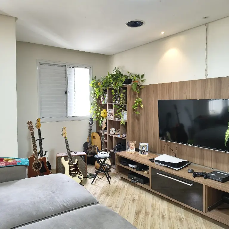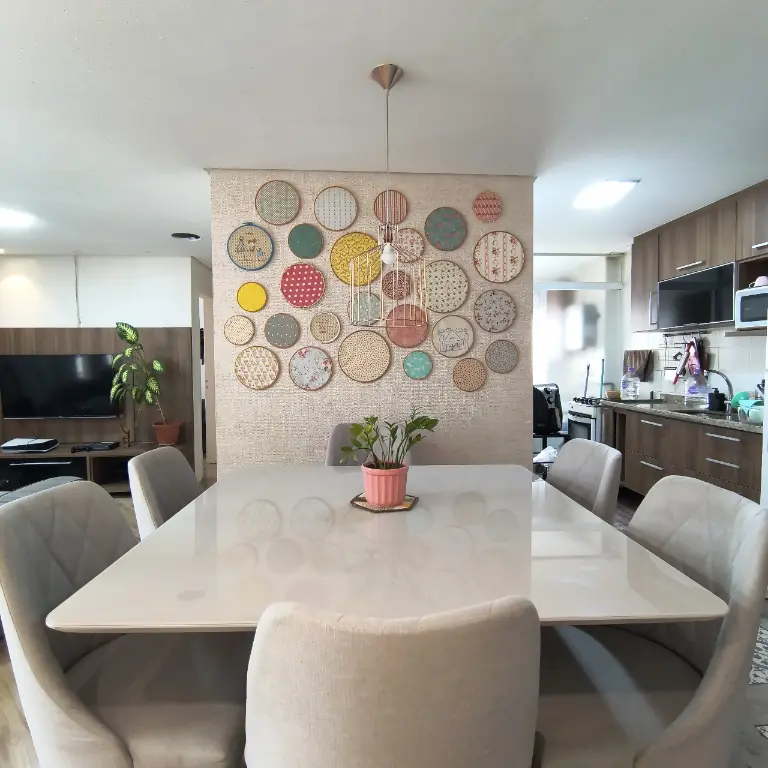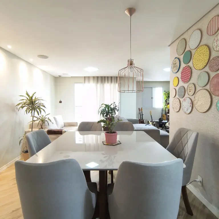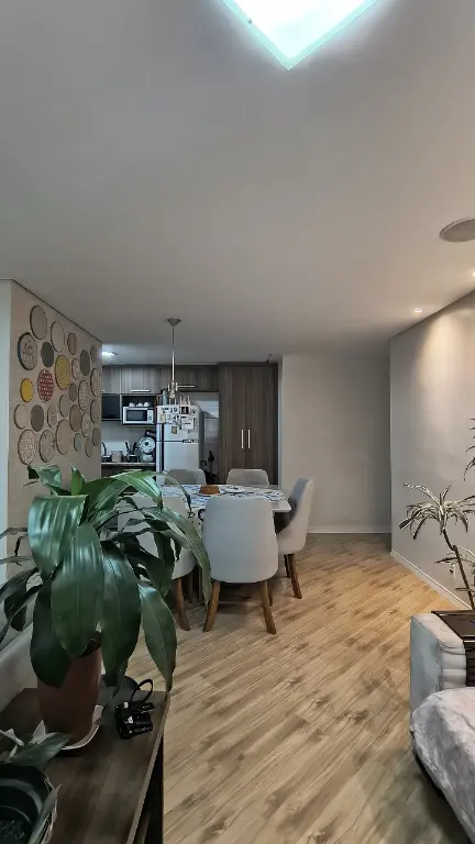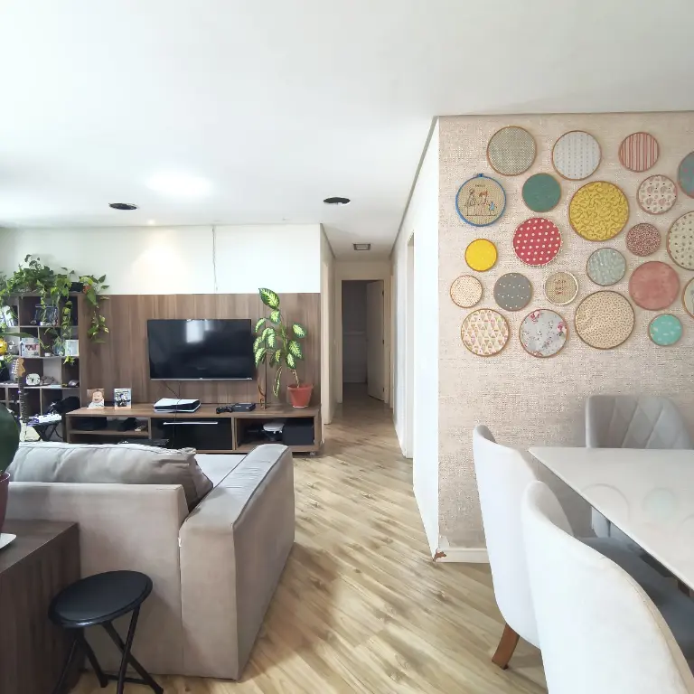 Sala dois ambientes, área de serviço fechada, móveis planejados