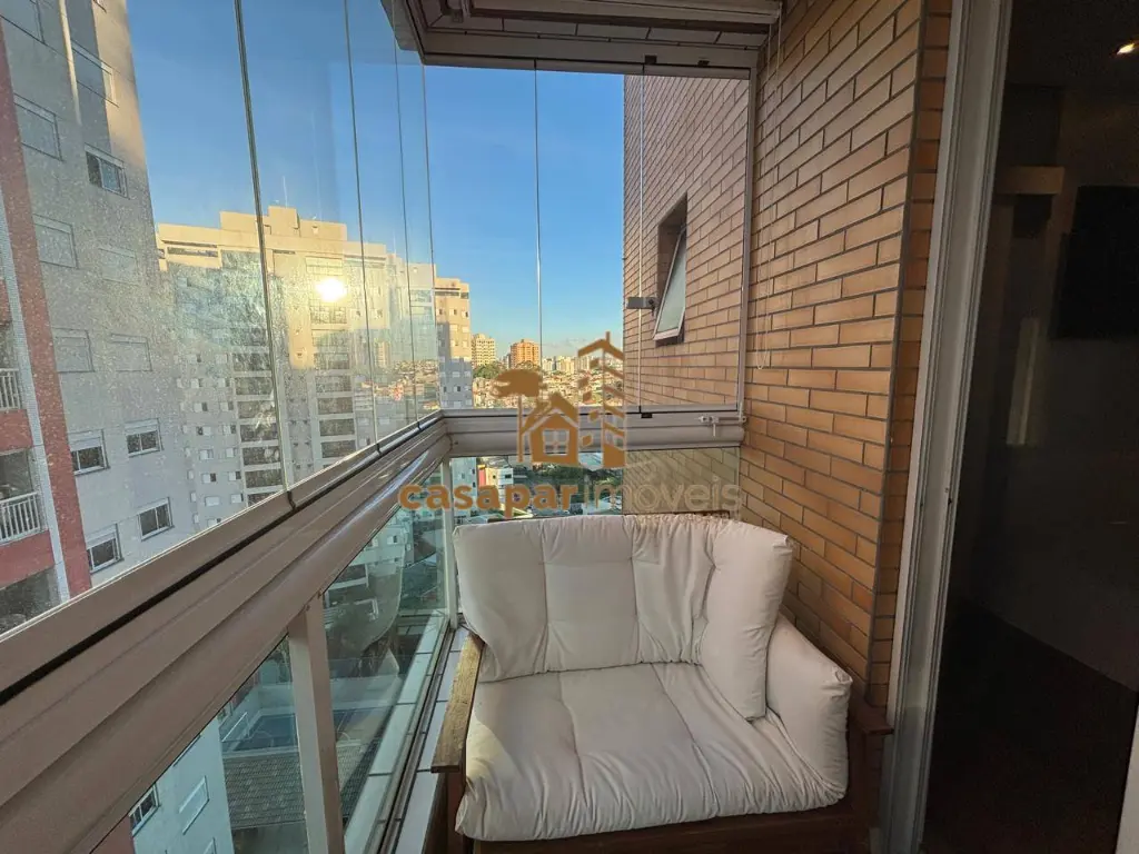 Sala acolhedora com sacada envidraçada, perfeita para relaxar ou receber amigos
