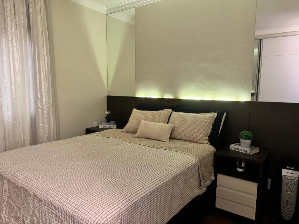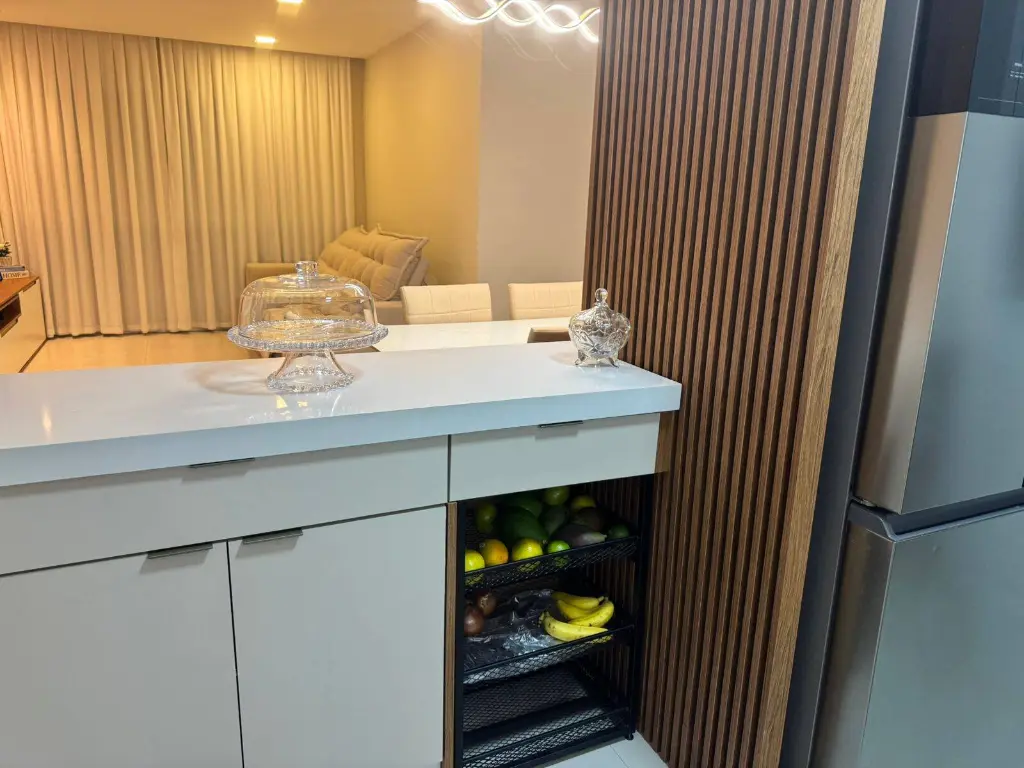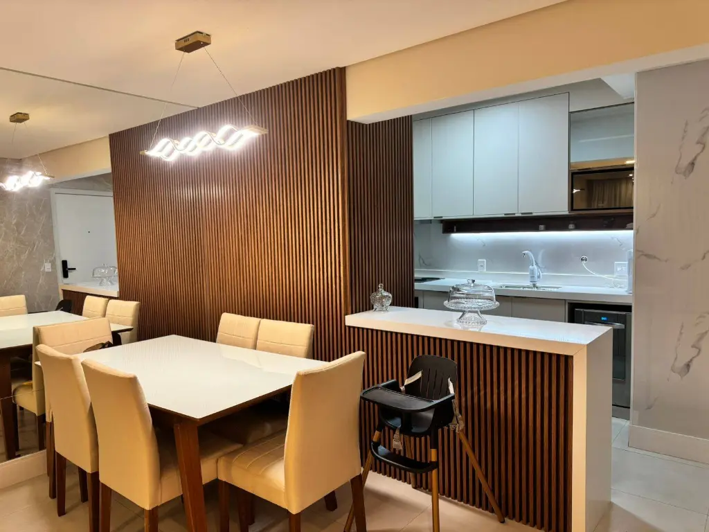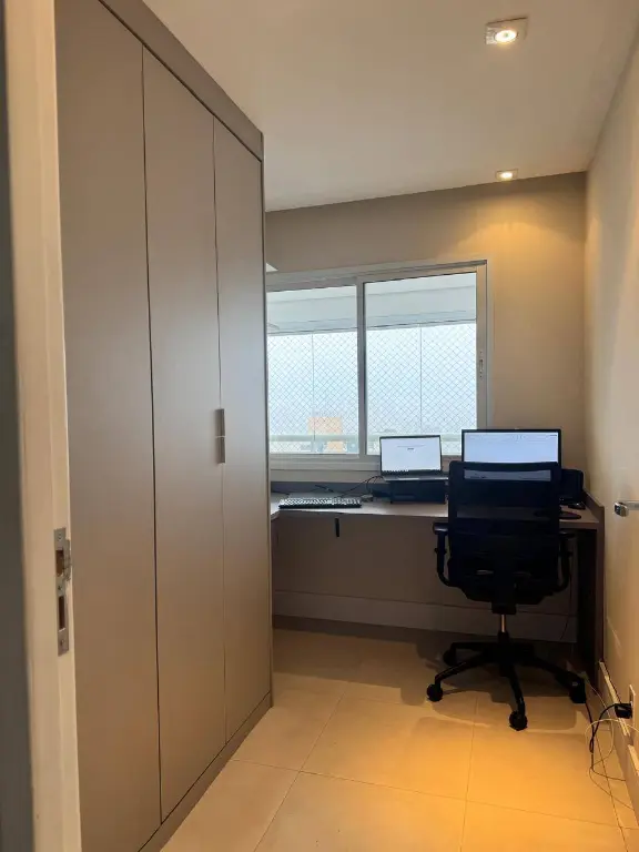 O imóvel conta com 3 dormitórios planejados, sendo 2 suítes e um com mesa para trabalho em home-office.