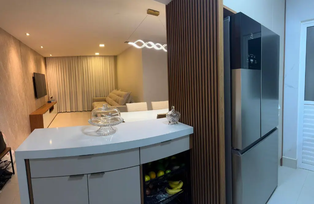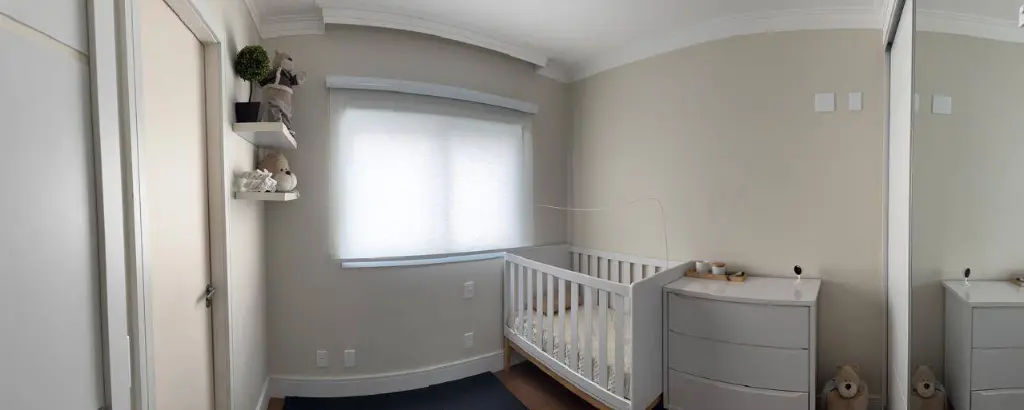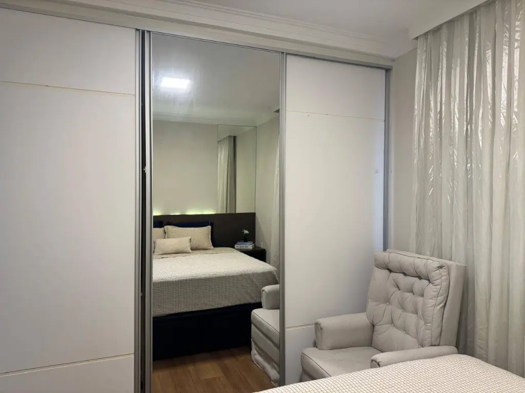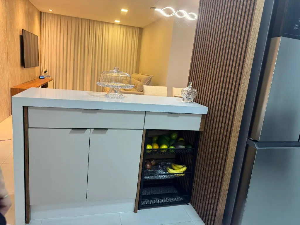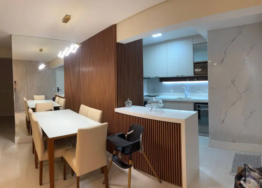 O imóvel conta com 3 dormitórios planejados, sendo 2 suítes e um com mesa para trabalho em home-office.