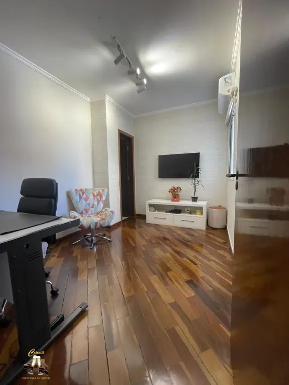 Com 3 dormitórios, sendo 3 suítes, 1 banheiro, 1 lavabo, armarios planejados na cozinha, 1 closet, ar condicionado nas suites e sala, 3 vagas de garagem.
