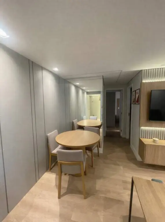 Com 2 dormitórios, sendo 1 suíte, possui 2 banheiros, 1 vaga de garagem, 1 sala, encontra-se mobiliado, localizado em condomínio.