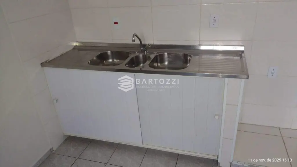 O imóvel conta com 1 dormitório bem iluminado, sala aconchegante, cozinha funcional, banheiro social e lavanderia independente, oferecendo um layout prático e acolhedor para o dia a dia.