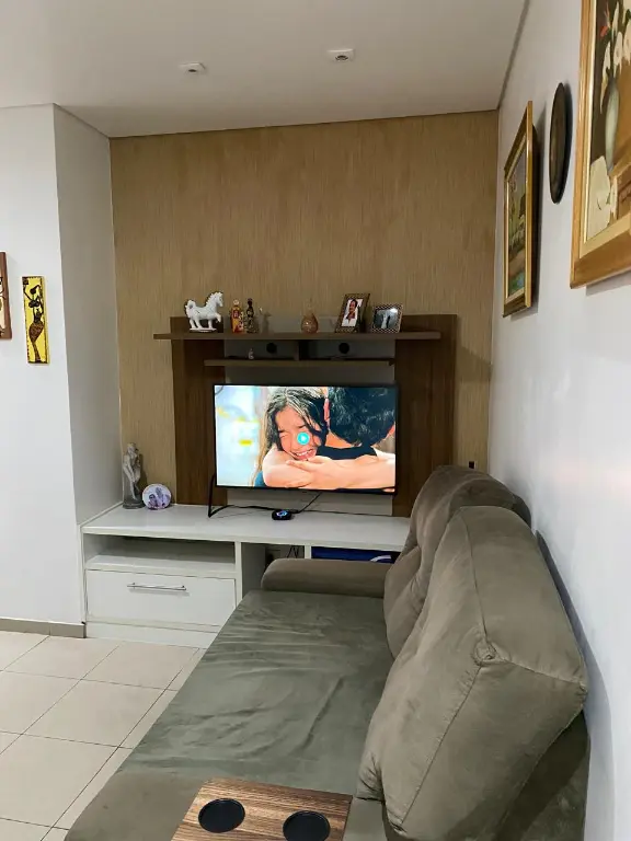 Possui 2 dormitórios, sendo 1 suíte, 1 sala, cozinha planejada, 2 banheiros com box e armários, área de serviço, churrasqueira, 2 vagas de garagem.