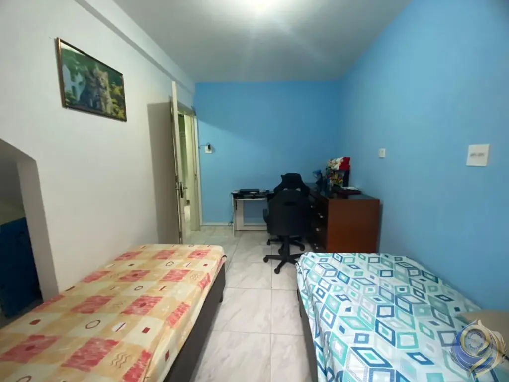 São 2 dormitórios, sendo o principal localizado na parte frontal do imóvel - atualmente utilizado como quarto, mas com possibilidade de reversão para sala, conforme a planta original. Na parte superior, há um cômodo adicional com acesso por escada interna, ideal para terceiro dormitório, escritório ou espaço multiuso.
